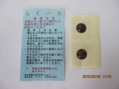3年ほど前にらくーなという製品を作りました。育成光線が放射される鉱石を練りこんで作りました。50肩や腱鞘炎の痛みが出たときに貼って痛みが楽になったことがあります。痛風になっていろいろ調べていると、疲労物質といわれる乳酸も痛風の発作に影響していることがわかりました。らくーなの鉱物は、疲労物質といわれる乳酸生成を抑える効果があるようで、血液の酸性化を抑制、結果、尿酸の結晶化が抑えられるのではと結論付けました。あくまでも私、個人の意見です。